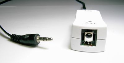 We'll need the Devolo dLAN USB Extender, an USB audiostick, and a Devolo power line for ethernet connectivity. The audio output of the USB audiostick can be connected to: