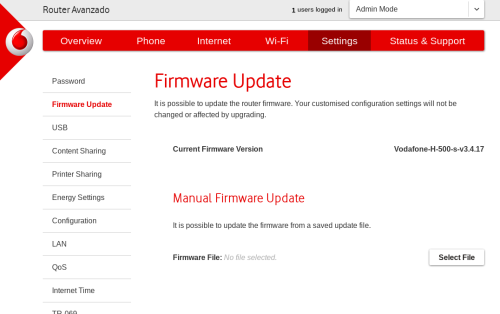 Also, the firmware version numbering is clearly distinguishable from the OpenRG-based variants, for instance: Vodafone-H-500-s-v3.4.17 is the version shown in the above OEM easy install guide. This may indicate a common firmware base between the Sercomm H-500-s and this porting for the older Vox2.5 design.